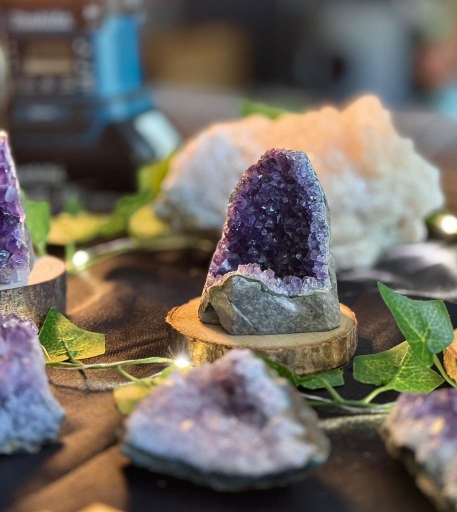 Plaats een Amethist in je slaapkamer of meditatiehoek voor een rustige, beschermde sfeer. Draag haar bij je om negatieve energie te zuiveren of meer innerlijke balans te ervaren. Ook prachtig als cluster in huis — ze reinigt de ruimte én andere stenen.